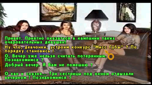 Интерактивный видеоквест, полный самых неожиданных и соблазнительных моментов, предложит вам пообщаться с таинственной незнакомкой и, если повезет, даже обольстить ее. Добиться успеха нелегко, но игра поможет вам раскрепоститься и проявить себя в полной мере. Три очаровательные собеседницы готовы исполнить ваши сокровенные желания, но ... при условии, что вы будете тактичны и обходительны, как настоящий джентльмен. Выбирайте одну из трёх героинь и соблазните её. Один ошибочный ответ откинет вас назад в общении, либо вообще закончит ваш квест. Задача-100% отношениё.